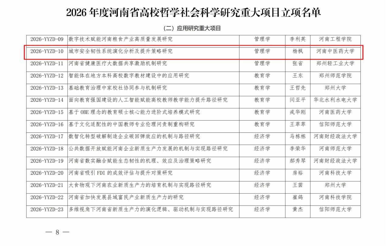 杨枫副教授获立2026年度河南省高校哲学社会科学应用研究重大项目