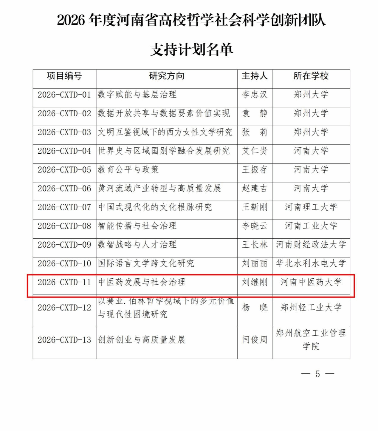 刘继刚教授团队入选2026年度河南省高校哲学社会科学创新团队支持计划
